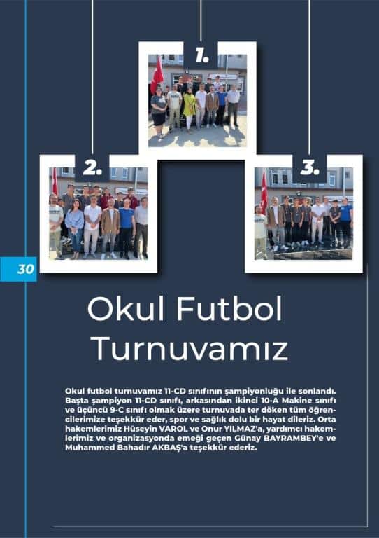 Bu sayıda; ürün sergimizden yıl sonu mezuniyet törenimize, sosyal sorumluluk projelerimizden mesleki yarışmalardaki başarılarımıza, kültürel gezilerimizden sportif etkinliklerimize kadar pek çok güzel anı sizlerle paylaşıyoruz.
